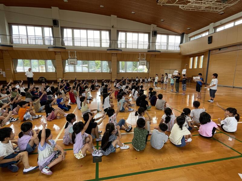 昨日は児童集会が行われ、環境美化委員会のみんなからゴミや電気に関するクイズが出されました。