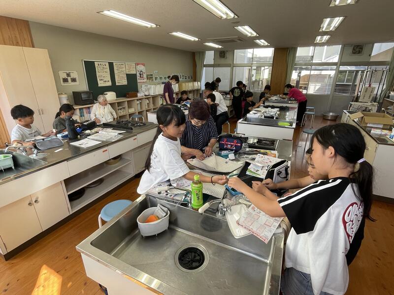 昨日は5年生の家庭科の授業に学習ボランティアのみなさんにおいでいただき、手縫いの仕方を教えていただきました。