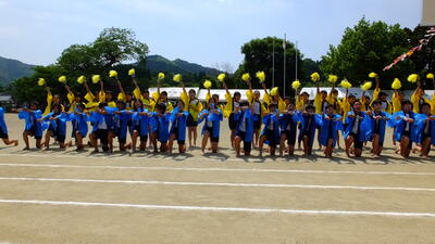 5月22日(日)に開催される運動会に向けて、全校児童で結団式を10日(火)に行いました。