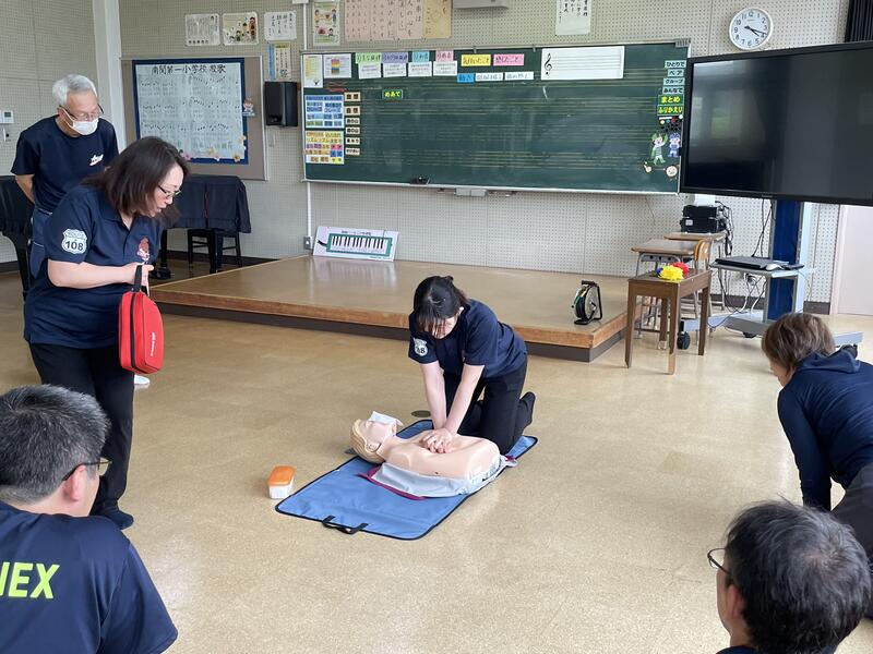 今日は放課後、荒尾消防署南関分署の署員のみなさまにおいでいただき、職員による救命救急法講習会を行いました。
