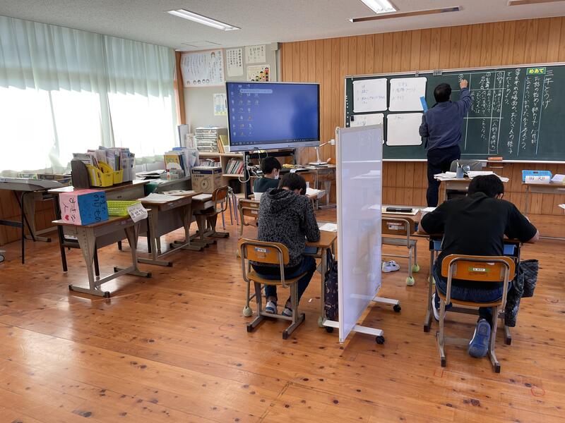 ただ、そのモニター画面がやや小さく見づらいので、何とかならないかと考えていたところ、事務の先生がHDMIのケーブルを使って、職員室内にある大型テレビにモニター画像が映るようにしてくれました。