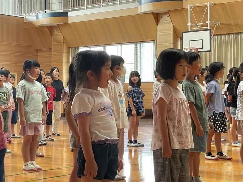 風がとても強くペーロン船での活動ができないため、体育館でニュースポーツをすることになりました。