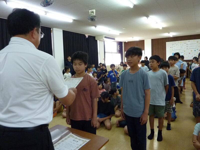 7月18日(金)に、「夏休み前集会」を行いました。集会では、最初に表彰、そして、各学年代表児童による前期前半の振り返り発表、校長講話等を行いました。そして、最後に、産前休暇に入られる古賀先生から、子供たちにお話をしていただき、子供たちからは「元気な赤ちゃんを産んでください」という気持ちを込めて大きな拍手を送りました。