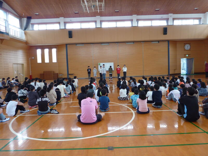 5月1日(木)、本年度初めての児童集会を開きました。今回は各委員会委員長による1年間の活動計画の紹介等でした。委員長を務める6年児童の凜々しい態度がとても印象的でした。「主体的」に活動する姿を期待しています。