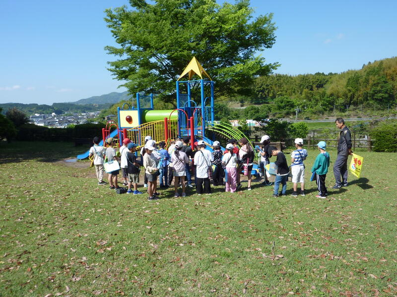 5月2日(金)に、3年生が大津山公園や大津山神社等に出かけました。大津山公園や大津山神社から校区内の様子を観察したり、場所を校区地図に書き込んだりしました。天気に恵まれ、楽しいひとときを過ごすことができました。