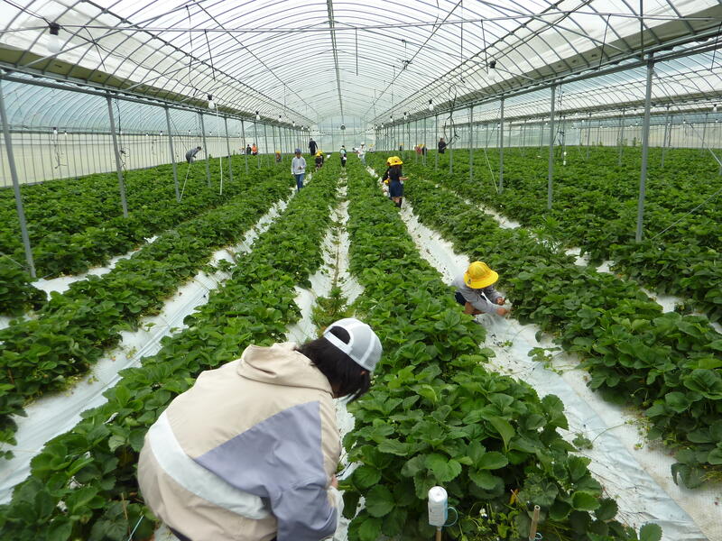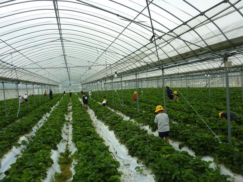 5月8日(木)、9日(金)の2日間、プール横のビニルハウスでイチゴを栽培されている福本さんのご厚意で「イチゴ狩り」体験をさせていただきました。時間割の調整ができなかった4年生、6年生以外の学級が体験させていただきました。ハウスの中はイチゴの甘い香りが広がっており、その香りを嗅いだだけでとても幸せな気持ちになりました。子供たちは、時間の許す限りイチゴを摘み取っては笑顔で食べていました。(4年生と6年生は、あらかじめ摘み取ってくださっていたイチゴを、給食時にいただきました。)