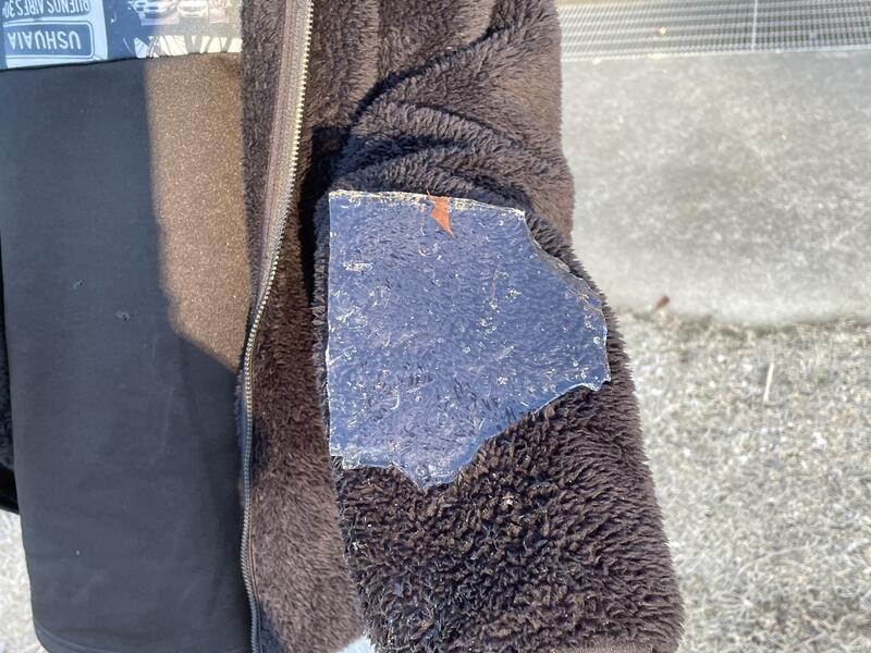 運動場の水たまりに氷が張り、それを2年生の児童が見せてくれました。ありがとう。