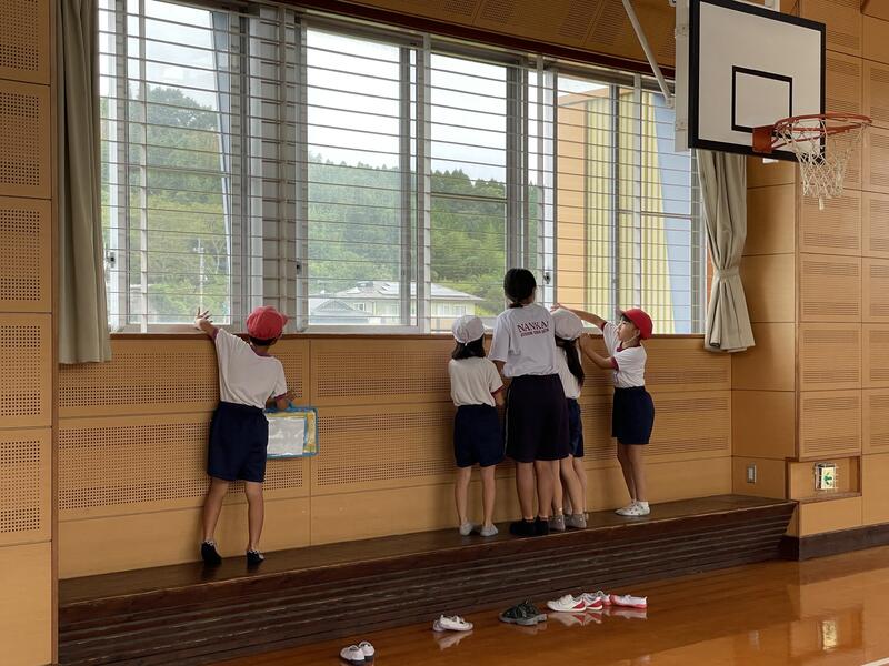 4年生はプールで水泳の授業が行われていましたが、雷が鳴ったため、途中で早めに授業を終わりました。ちょうど移動の時間だったため、写真が撮れませんでした。「もっと泳ぎたかったです」と言っていました。