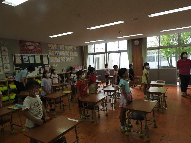 登校した後の子どもたち(教室)と1年生くじらぐも
