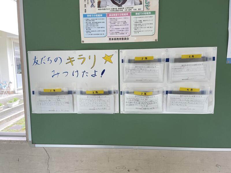 廊下を歩いていると、キラリコーナーでキラリカードを書いてくれている5年生がいました。