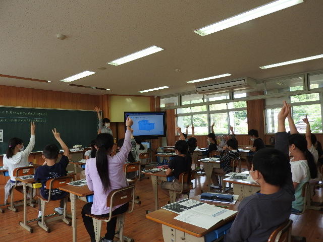 お隣とできるだけ間(1m)をあけてのグループ学習(5年生)