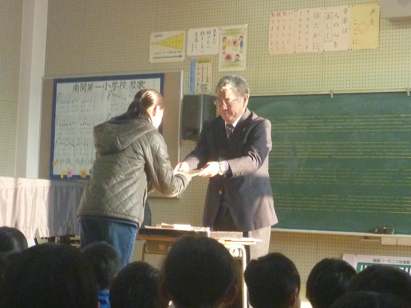 朝の集会は、表彰集会でした。「南からの挑戦状」「町駅伝大会」「玉名荒尾図工美術展」「明るい絵画コンクール」の表彰をしました。