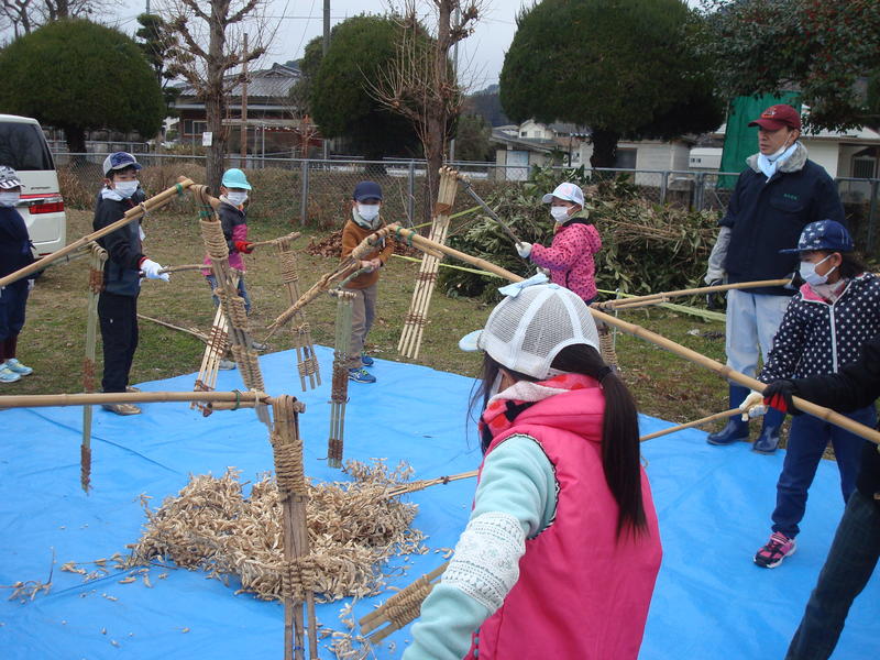 PTA副会長の稗島さんに来ていただき、しめ縄作りを行いました。
