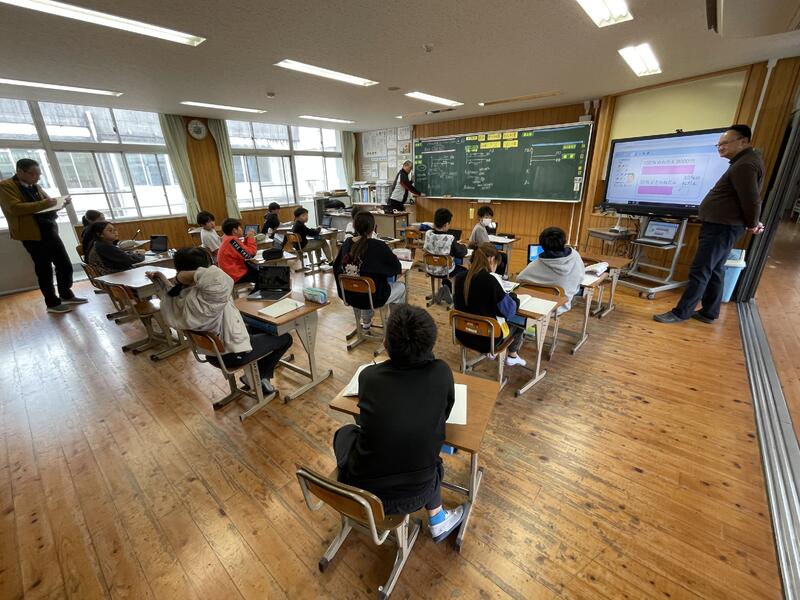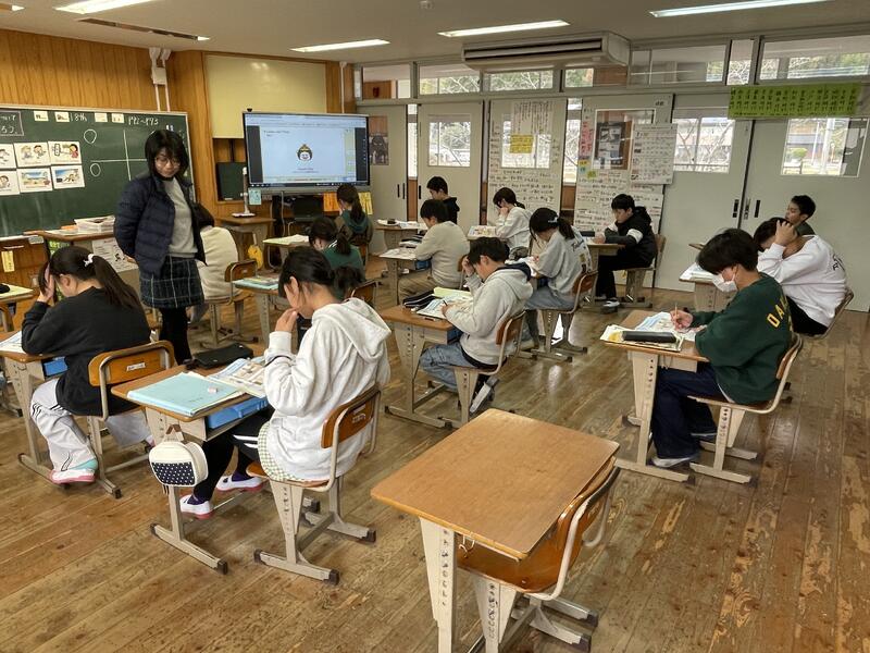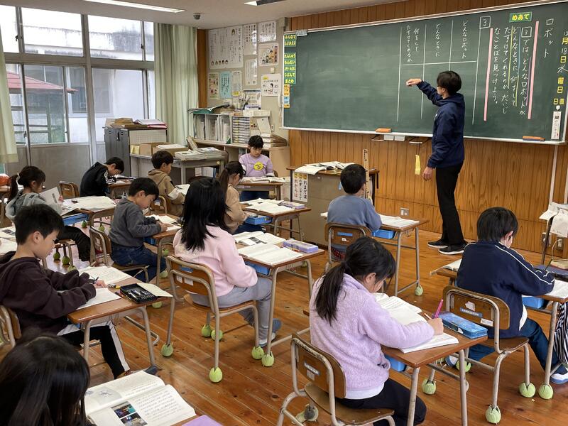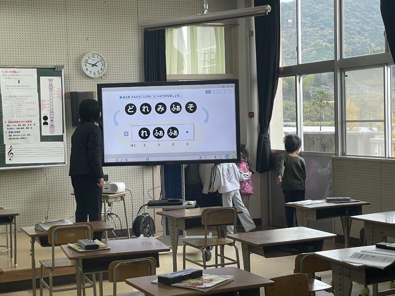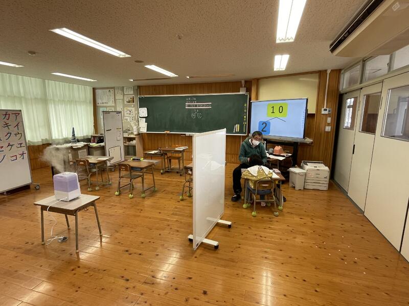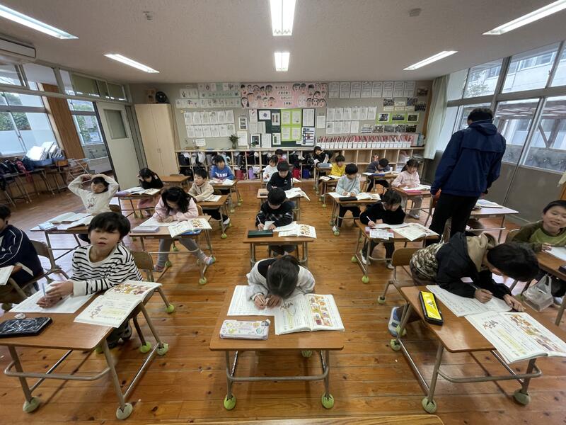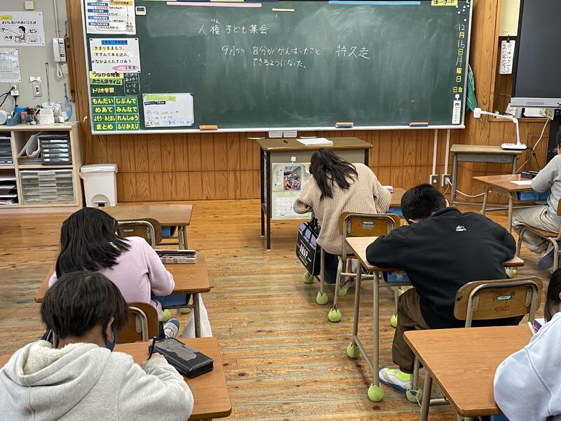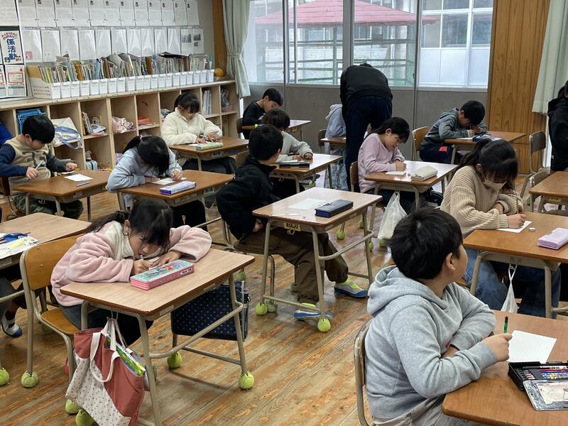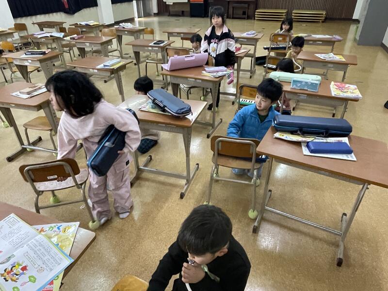 中庭の樹木を剪定してもらったおかげで、一年生の教室が明るくなりました。