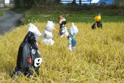 10月18日月曜日 5年生は総合的な学習「米作り」で、かかしづくりに挑戦しました。