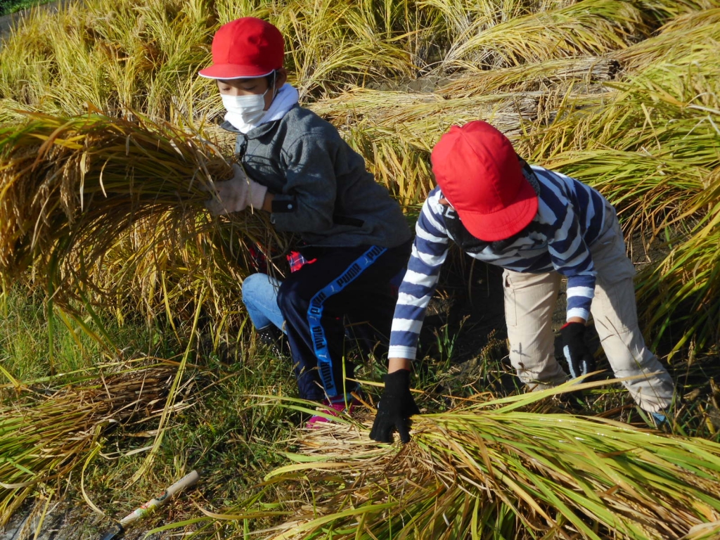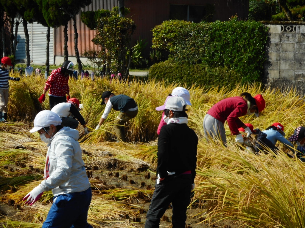 今日、城門さんの指導の下、米作り最後の作業である「稲刈り・脱穀」がありました。