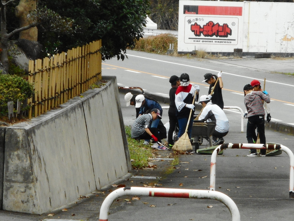 毎年、持久走大会のコースになる歩道の清掃を今年も5・6年生で行いました。