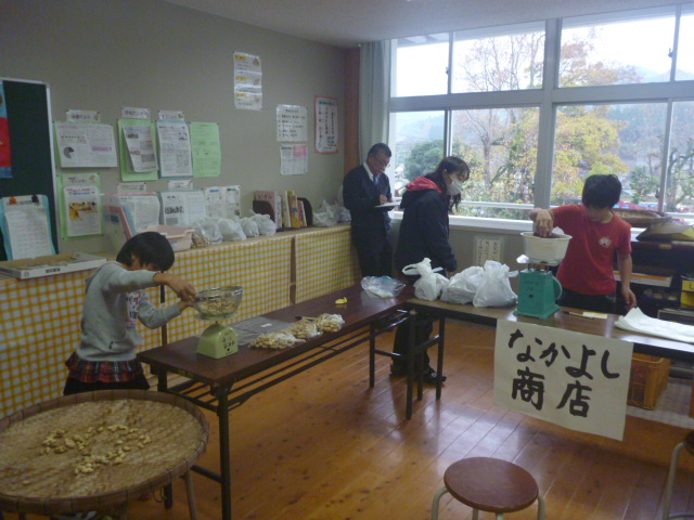 日生指導で、自分たちで育てた落花生とサツマイモのお店が出されました。