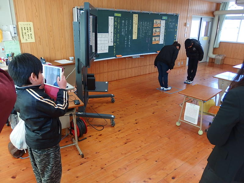 1年から4年は、体育館で自分のおじいちゃんおばあちゃんや地域の高齢者方と一緒に