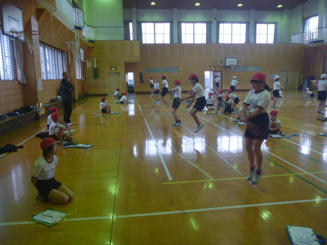それぞれの学年で、持久跳び、学年での種目跳び、自分の得意跳びの3種目で頑張りました。