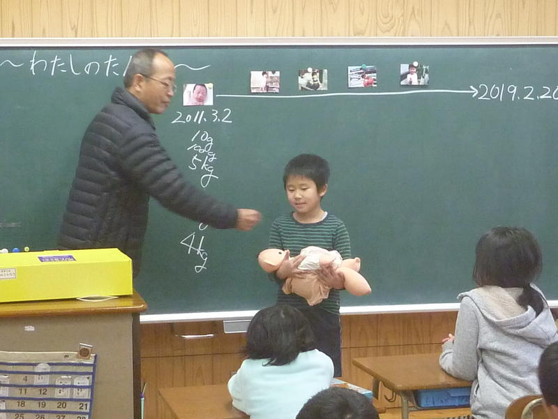 「生命誕生」がテーマで、実際の赤ちゃんと同等の人形をだっこしたりして、命の尊さを学んでいきました。