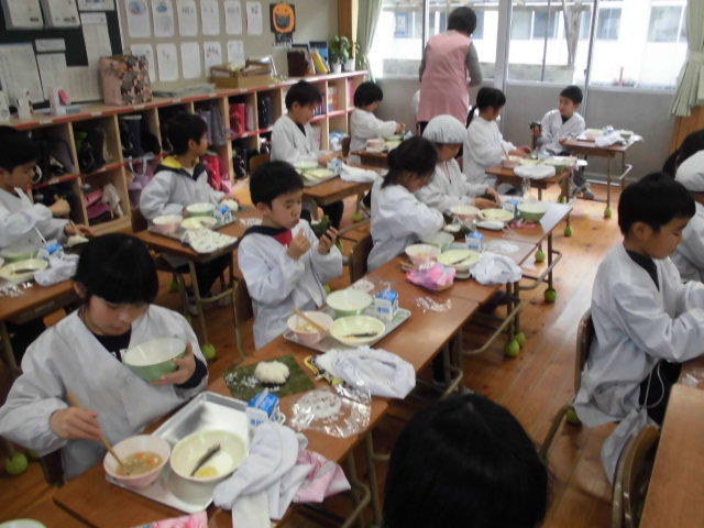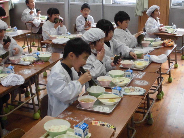 昨日、5年生が米作りを通してお世話になった皆様をお招きして、感謝の会を開催しました。南関あげいなり寿司、節そうめん汁を作っておもてなしをしました。
