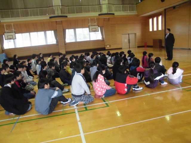 2時間目後の休み時間に緊急全校集会を開きました。昨日の下校の時、道路いっぱいに広がって下校し、車の進行を妨げたためです。子どもたちの、運転手さんの命に関わる事案でもあります。これまでも指導をしてきたところですが、目に余る状況でしたので、今回は集会にて指導をしたところです。5年生は「感謝の会」の準備中で、集会には参加していませんでしたので、感謝の会終了後に、教頭先生と教室に行き話をします。(11:30アップ時点で記載)