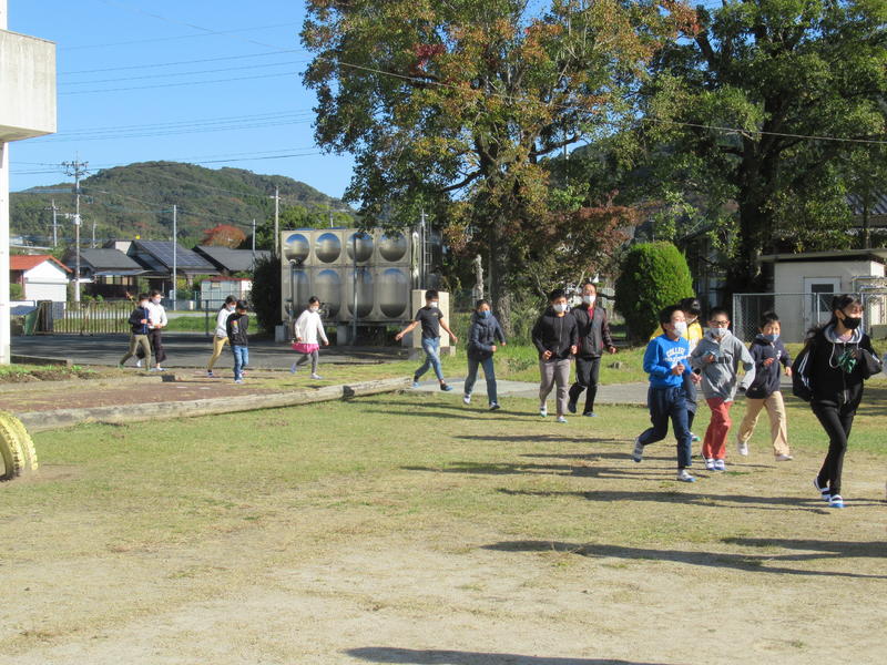 朝ランスタート】本日より持久走大会に向けて、朝ランを始めました。できるだけ密を避けるために、3年4年5年と1年2年6年のグループに分けて一日交替で行います。健康チェック、準備運動を済ませて、学年ごとのスタート地点からスタートして、自分のペースで5分間走ります。