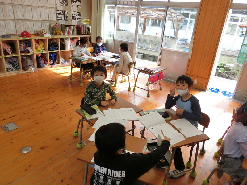 5時間目の生活科の時間に、2年生が1年生を招待して、楽しく交流しました。「1年生を楽しませる、喜んでもらう。」という意識をもって、遊び(ゲーム)を創り、準備をしてきました。説明の練習もしてきました。交流は大変盛り上がり、1年生は勿論ですが、招待を受けた私たち大人も、主催した2年生もみんな笑顔の交流となりました。創り出す力、つながる力、考動する力の育成にもつながりました。