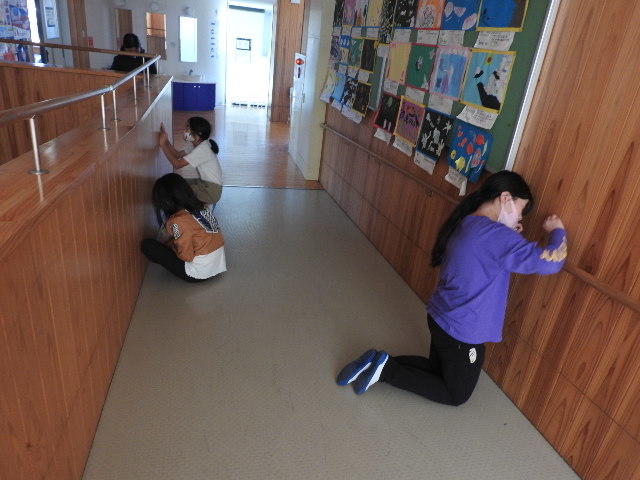 今日の2時間目に地震の後に火災が発生したという想定で避難訓練を実施しました。いつ、どこで発生するか分からないのが地震や火災ですので、自分や周りの人の命を守るための大事な訓練として行っています。子どもたちは、誘導する先生の指示を聞き、慌てず、話をせずに避難してくれました。万一の場合、「お・か・し・も」が鉄則です。「お=おさない、か=かけない、し=しゃべらない、も=もどらない」を覚えておいてほしいと思います。