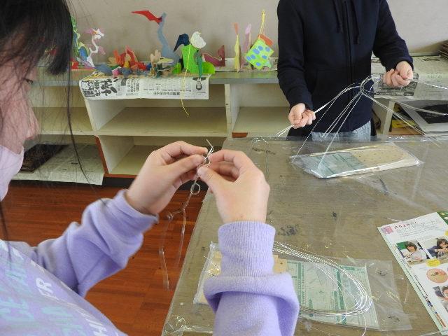 5時間目の5年生の図工の時間です。柔らかい針金を使っての工作です。子どもたちは作り始めてすぐにいろんな技を使って、制作に取り組んでいました。できあがりが楽しみです。