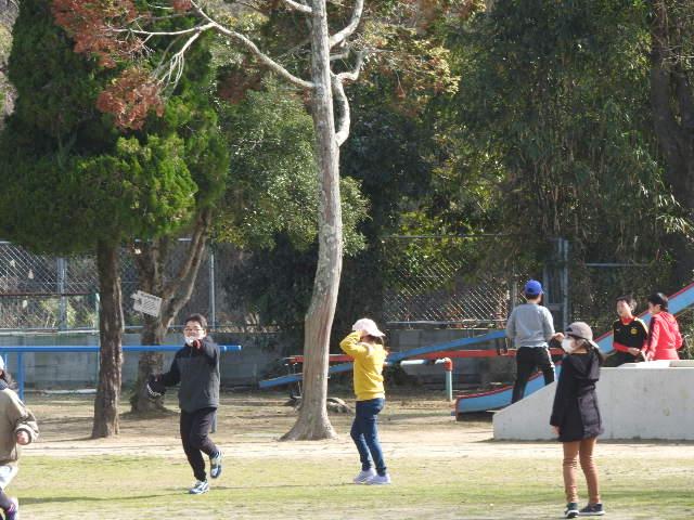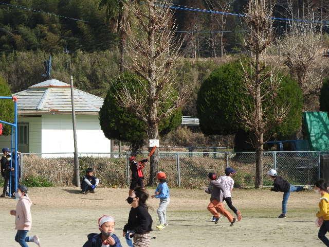 昼には、春を思わせるような温かさとなり、昼休みは外遊びをする子どもたちで大賑わいでした。野球やドッヂボールをしたり、おにごっこをしたりして遊んでいました。5年生は、今日がみんなで遊ぶ日で「けいどろ」をしていました。