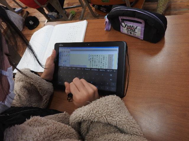 【6年生】総合的な学習の時間に、職業(自分の夢)について調べたことをタブレットを使ってまとめています。