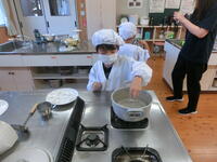 共同でつくるのではなく、一人一人が最初から最後まで自分の力でやりきりました。おいしくできあがったので、みんな大喜びでした。