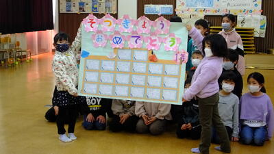 すっかり春めいた3月11日(金)に、6年生を送る会と送別遠足を行いました。オンラインでそれぞれの学年が6年生へのメッセージを伝えました。
