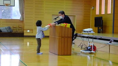 図画や作文だけでなく、算数の問題にチャレンジし続けている子にも賞状を渡しました。