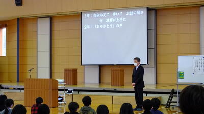 全校児童の話の聞き方も、とても上手になりました。しっかり顔を上げて聞いています。成長がうれしいです。