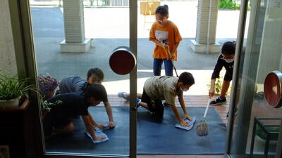さらに、昼休みには5年生が職員玄関前をきれいにしています。