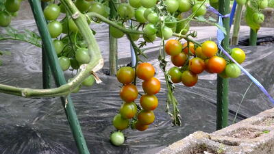 中庭では、1~3年生がお世話している朝顔やミニトマト、ピーマンなどがよく育っています。水やりや草取りなど、頑張っている成果が出ていますね。