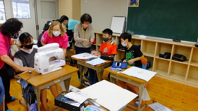 さすがに、婦人会の方々です。ミシンの種類が微妙に違っていても、取り扱い方法を見つけ、サポートしていただきました。