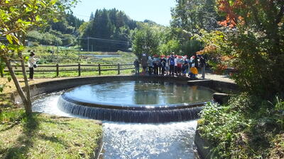 円形分水です。さて、通潤橋に向かう水はどこでしょうか。