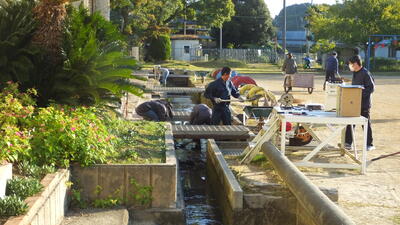 用水路にたまっていた砂や泥を丁寧にすくっていただきました。