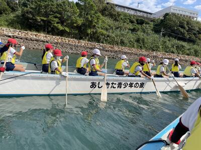 また、ナイトゲームでは班全員で手をつなぎ、乗り越える姿も見られました。2日目はペーロン船活動で、改めて協力することの大切さを学んだ子どもたちでした。帰りのバスの中では、「もう一泊したいです!」という声もありました。楽しい思い出になったようです!