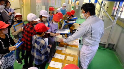 10月27日(木)3年生は、南関あげ工場、歴史博物館こころピア、水本オレンジガーデンに見学に行きました。