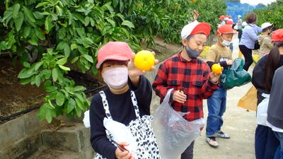 実際にみかんの収穫をさせていただきました。みかんのへたも上手に切り取ることができました。その後は、早速いただきました。おいしい!という声があちこちから聞こえてきました。