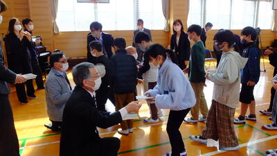 6年間の小学校生活を終え、中学校へ進みます。卒業証書を一人一人に手渡しながら、未来に幸あれと願いました。