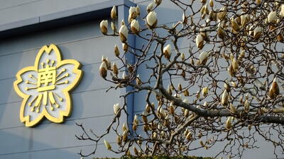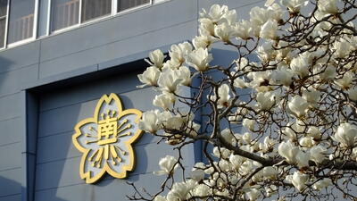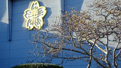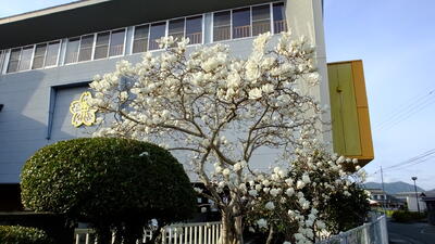 3月13日月曜日、正門横の木蓮が一気に満開です。