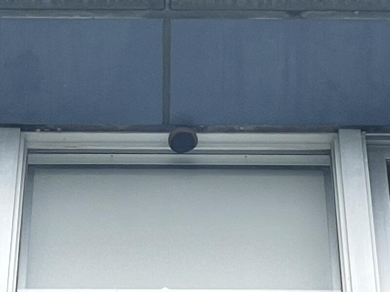 体育館の道路側の窓の高いところに巣を作り始めていました。