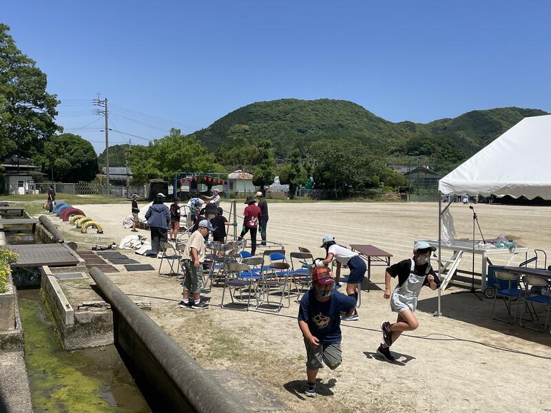 午後から5,6年生が明日の運動会の準備をがんばりました。