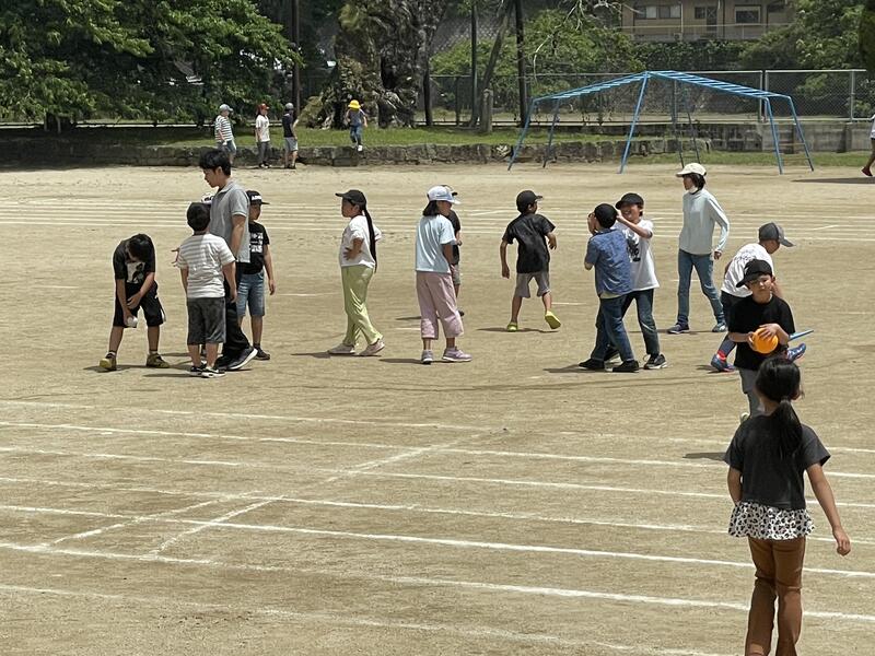 昼休み、子どもたちと先生方が一緒に遊ぶ姿も見られました。